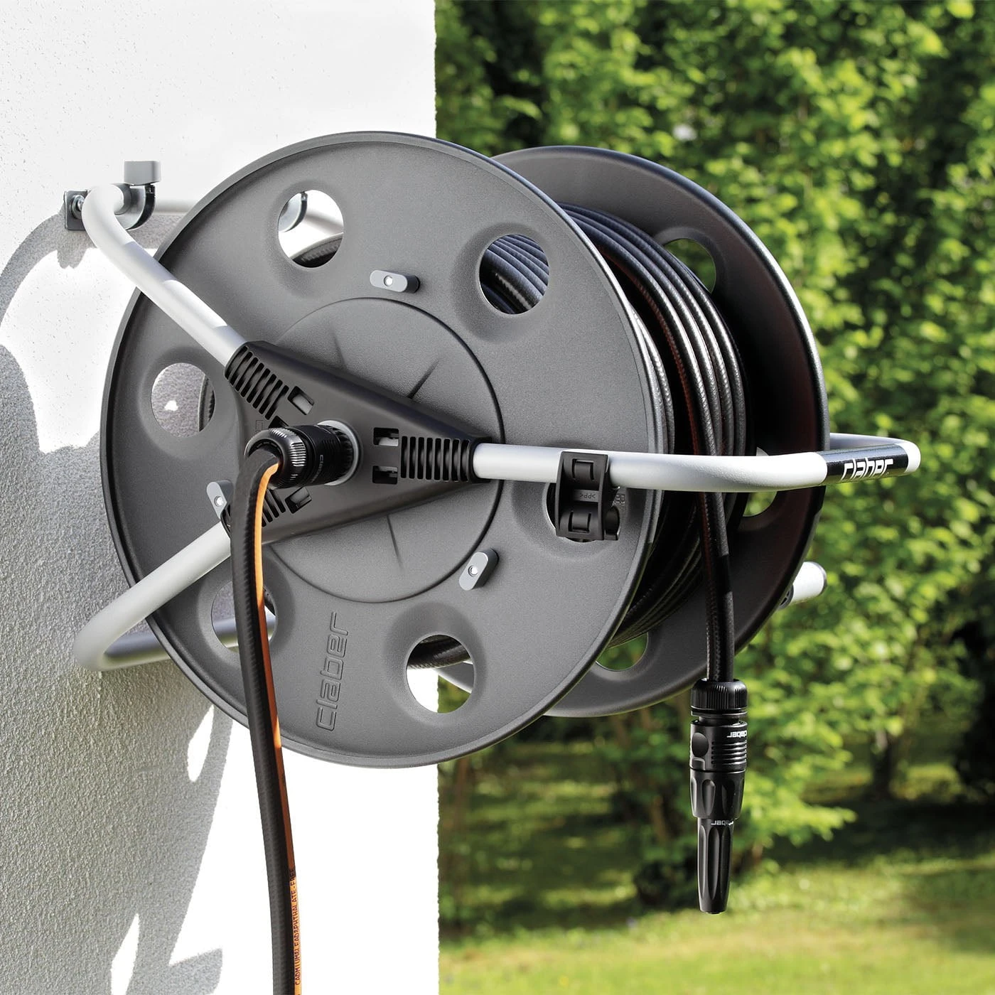 Movable hose reel for wall mounting comes in a kit for easy, tool-free assembly. Constructed entirely of metal. The epoxy resin finish of surfaces makes the reel resistant to the elements over time. Supplied complete with two wall brackets and automatic hose connector. This is by far one of the best value for money hose reels available, with it being super strong and low in price compared to other professional hose reels. This hose reel has a maximum capacity of 85 metres of 1/2″ garden hose.