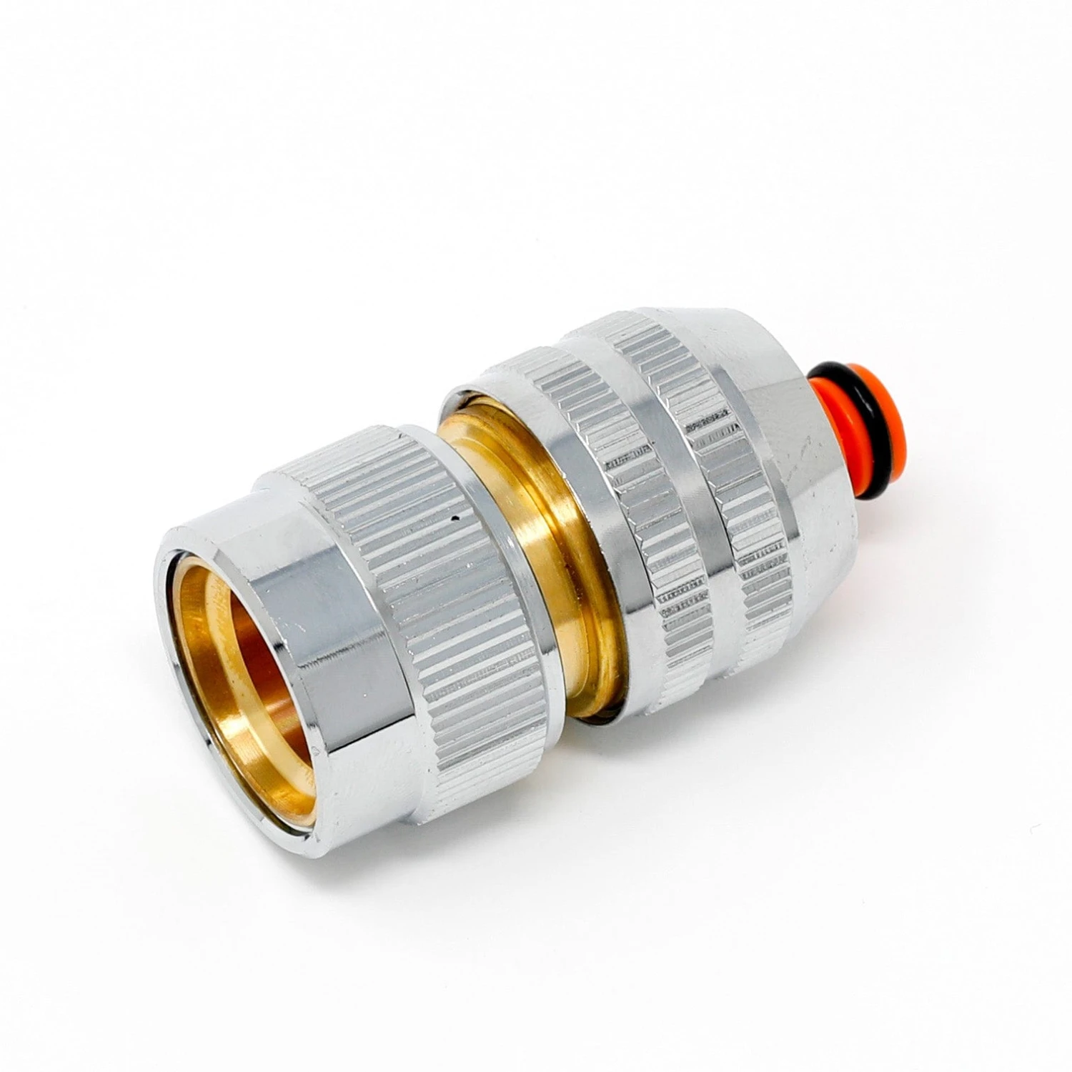 Use the Claber Metal Quick-Click with auto-stop coupling for a quick, perfect connection. Automatic coupling for 1/2″ diameter hoses in chrome-plated brass. Equipped with 6 internal bearings to guarantee automatic connection and a perfect seal. The aqua-stop stops the water flow when disconnected from an accessory such as a hose gun or garden sprinkler. The tightening ring nut with an exclusive Claber design profile distinguishes the product and improves grip.
