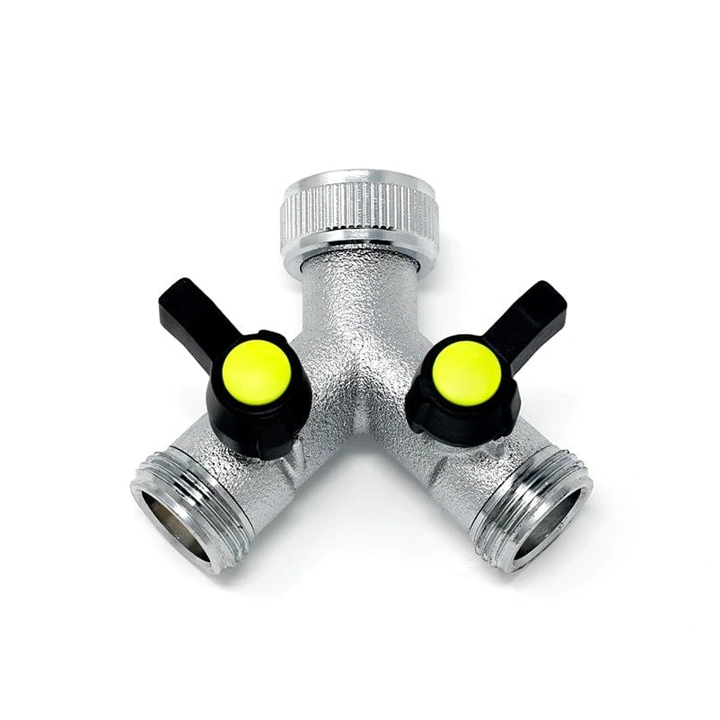 This connects directly to your outside tap and allows you to run two hoses at the same time. It also comes with the shut off valves so one or both sides can be isolated. There are many brass hose fittings available, but we only stock the best. Quality and longevity is assured when buying from us. These brass hose fittings are generally used by professional gardeners, contractors and the horticultural trade for their reliability and strength.