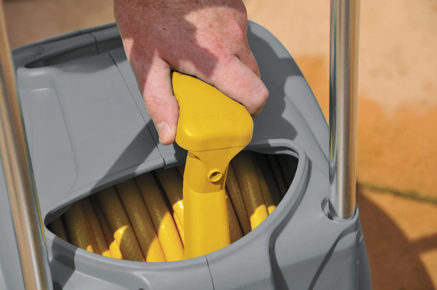 - Fully enclosed design protects the hose from wear and tear.